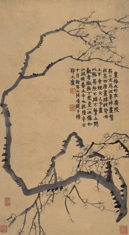 金农为清代 “扬州八怪” 之首,工诗善画,书法自创 “漆书”,画梅造诣尤深,其梅花作品突破传统范式,尽显孤高奇逸的文人风骨。